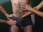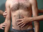 Here, hairy stud Guy takes on the challenge of being an object on display for our greedy pleasure as we manhandle his fit muscular body. He’s been working hard at the gym which has given him a trim frame and big hard thighs.