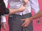 With his no boundaries attitude, we were eager to invite back in horny young Maurice. As he has just recently got married we asked him to wear his full wedding suit as if we'd just stolen him out of his limo on his way to the honeymoon. Throughout the session a perplexing mixture of terror and excitement shows clearly on his face. Being an anal virgin, he finds the intrusion to his arse a challenge but toughs it out well. This must be one of the hottest dildo fucking sessions I've ever had. I wonder what wifey thought when he arrived back home with his balls empty and arsehole throbbing red.