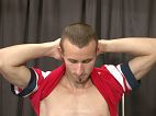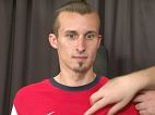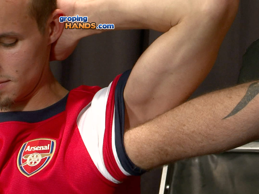 Sporty Wayne is a smooth-bodied footballer with a lean, hard body he's developed from running up and down the pitch all day. His tall imposing stature and muscular body make for an intimidating sight so it gives us a real rush digging our hands under his sexy football kit and groping him wherever we please. He enters the room as a tough macho hetero, but after we skilfully manipulate his highly reactive body and dick he's turned into an anal whore desperate to have his big pendulous balls emptied.